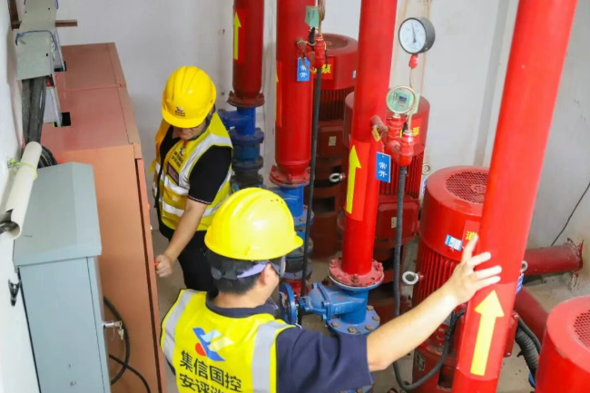 在市人民法院,维护团队对应急火灾报警系统、消防供水系统和灭火器进行了逐一巡检。对消防供水系统进行了测试,确保水源的充足和消防水泵的正常使用。此外,对所有灭火器的压力值、瓶体有效期及摆放位置进行了规范化调整与记录,确保每一具灭火器“拉得出、用得上”。